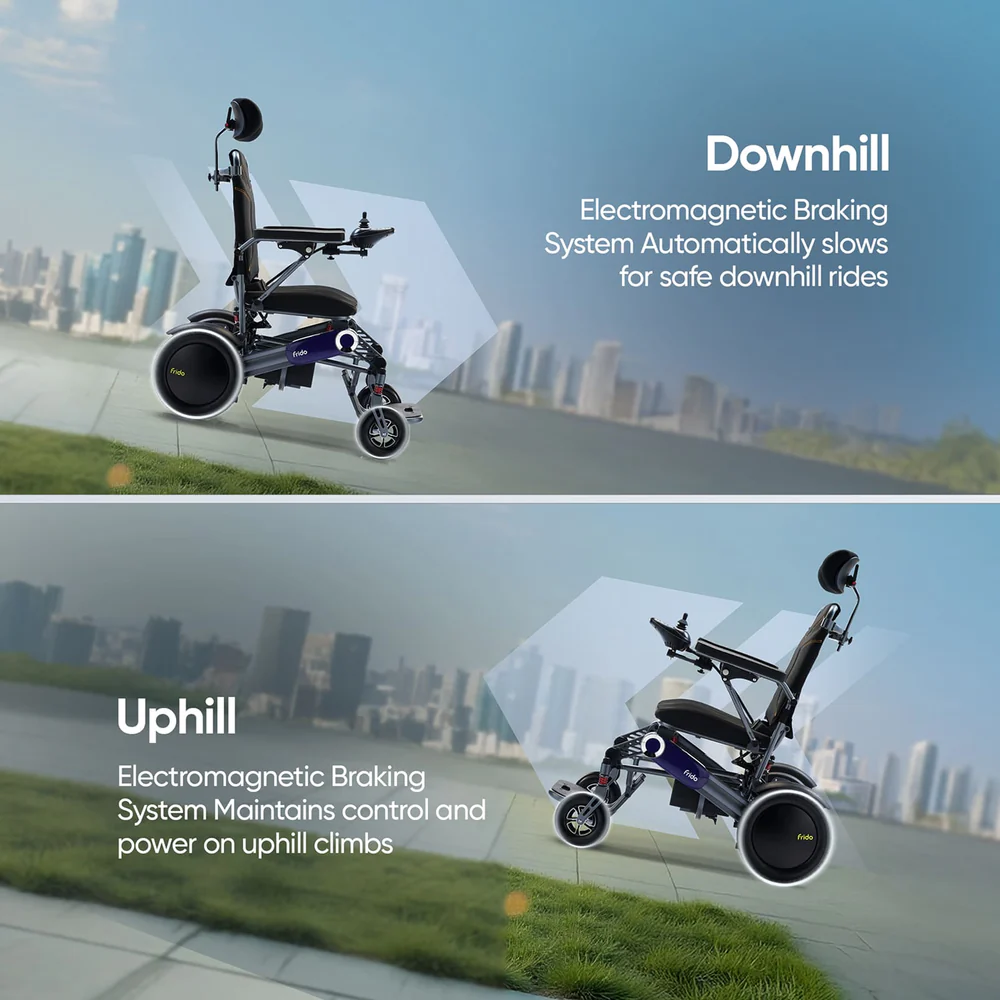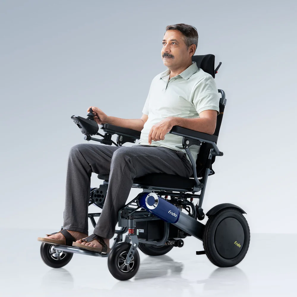 Frido Prime Plus Electric Wheelchair is easy to use and designed for comfort and independence. It has a powerful motor, simple joystick control, and a foldable design for easy travel and storage. The strong frame, comfortable seat, and long battery life make it suitable for daily indoor and outdoor use. Ideal for users who need safe and reliable mobility support.